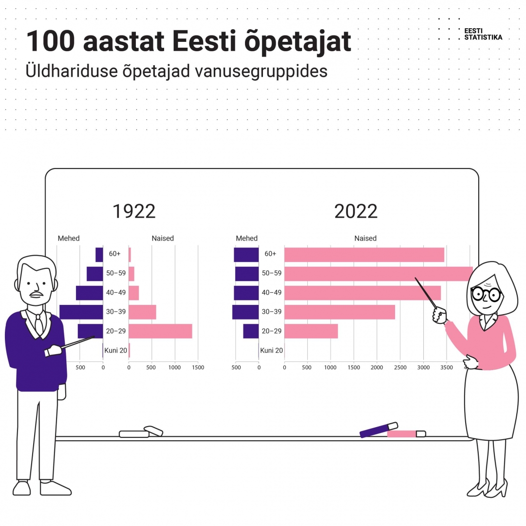 Igaunijas skolotāju dzimuma un vecuma struktūra 1922. un 2022. gadā. Avots: Igaunijas statistikas pārvalde