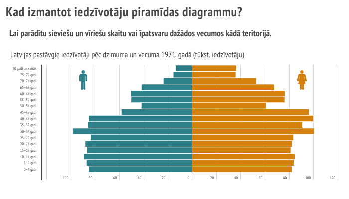 Lai parādītu sieviešu un vīriešu skaitu vai īpatsvaru dažādos vecumos kādā teritorijā (valstī, reģionā, pilsētā utt.). |